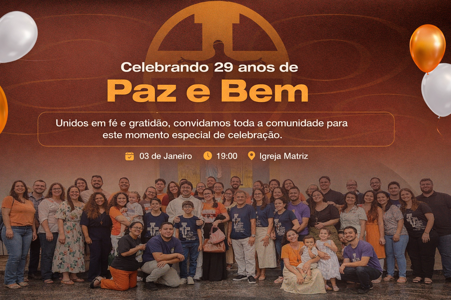 Celebrar 29 anos é reconhecer a fidelidade de Deus em cada passo, agradecer a todos que fizeram e fazem parte dessa história e renovar o compromisso de seguir anunciando, com alegria e coragem, que é possível viver o Evangelho hoje. Que o Senhor continue a nos conduzir para que, em tudo, sejamos instrumentos de Paz e Bem.